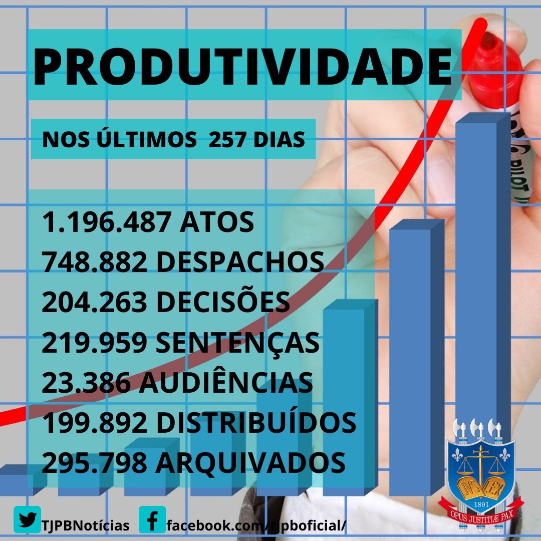 Durante a semana, o Conselho Nacional de Justiça (CNJ) divulgará o ranking nacional, por meio do Painel de Produtividade Semanal Covid-19, cuja produtividade do TJPB tem se destacado. Tomando as devidas cautelas e seguindo os Protocolos de Biossegurança, a prestação jurisdicional vem sendo efetivada com qualidade pelo Poder Judiciário paraibano. A Justiça não para!