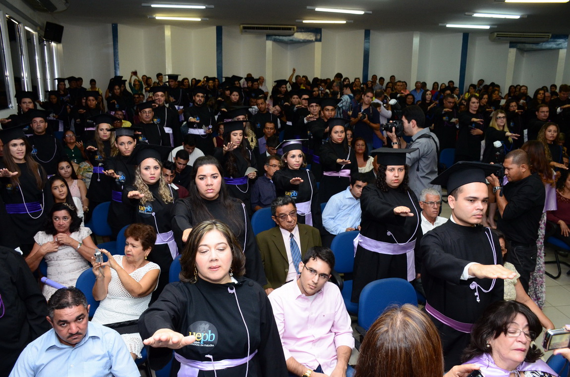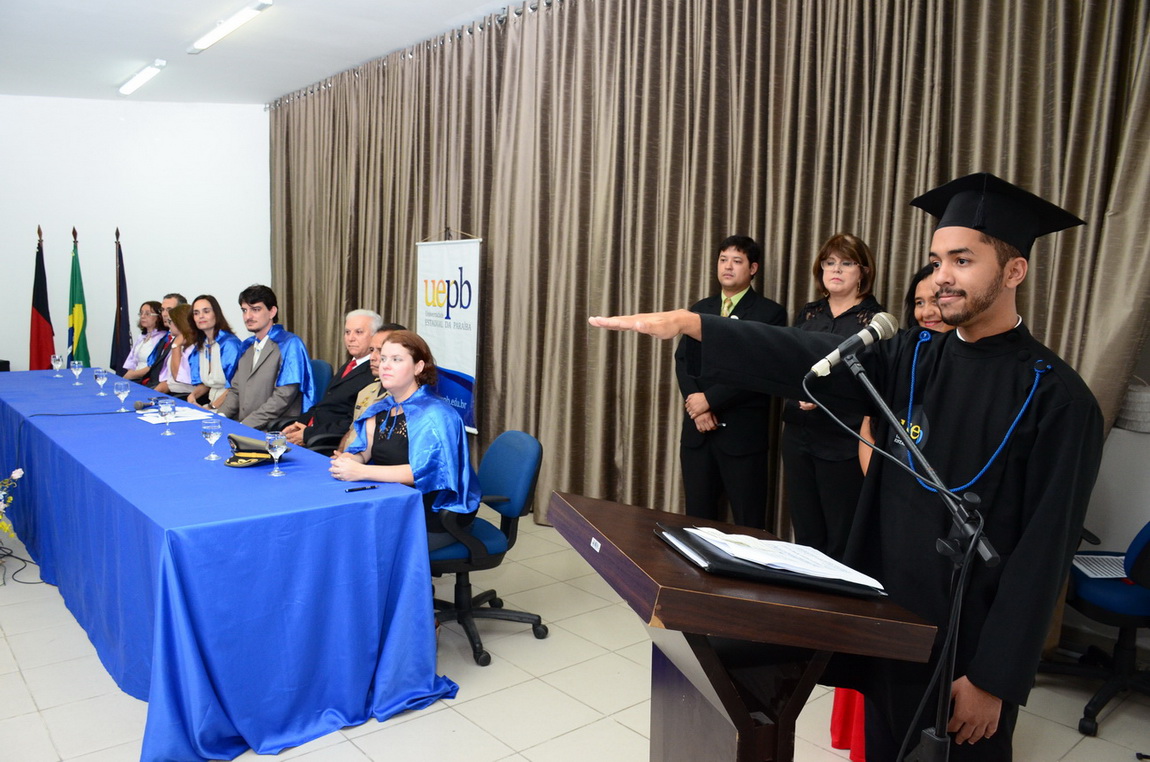 Os estudantes concluintes são dos cursos presenciais de Arquivologia, Ciências Biológicas e Relações Internacionais, e dos cursos do ensino à distância (EAD) de Administração Pública, Geografia, Letras e Pedagogia. Na oportunidade, o aluno Valter Ângelo da Silva Júnior fez a leitura de juramento dos formandos, enquanto o discente Alain Delon foi o orador das turmas.