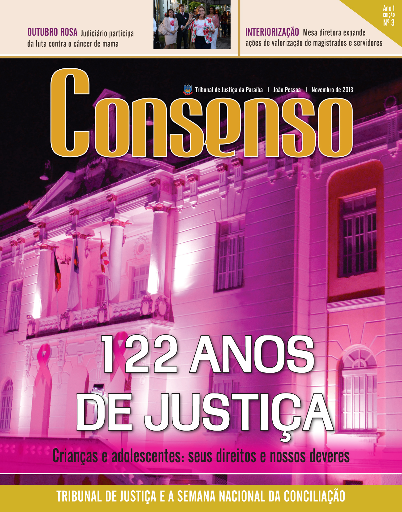 Os 122 anos do TJPB é o assunto de capa da revista Consenso nº 3, que traz também reportagens sobre os diretos das crianças e adolescentes, a Semana Nacional de Conciliação, entre outras. Na revista, o leitor vai encontrar ainda uma entrevista com o corregedor de Justiça, desembargador Márcio Murilo, que fala sobre “Orçamento, as leis e as necessidades dos juízes”.
