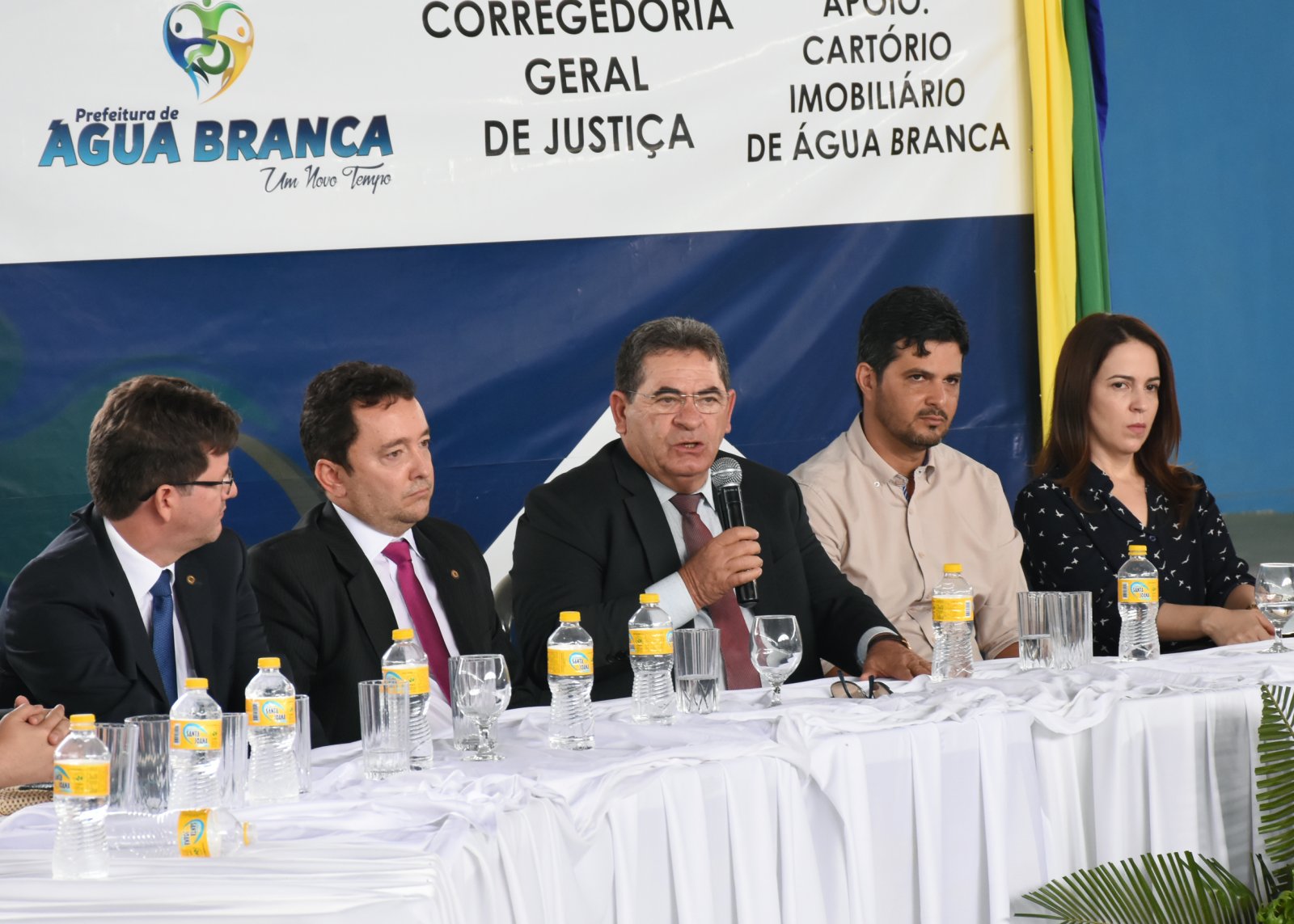 Na manhã desta quarta-feira (5), 100 famílias carentes do Município de Água Branca foram beneficiadas com o Programa ‘Moradia Legal’. Um convênio assinado pelo corregedor-geral de Justiça, desembargador José Aurélio da Cruz; o prefeito da cidade, Everton Firmino Batista; e a tabeliã do Cartório de Registro de Imóveis, Maria Aparecida Marçal Leite, garantiu à população de baixa renda o direito ao registro dos imóveis, em situação irregular, gratuitamente, entre outros objetivos relacionados à Regularização Fundiária Urbana de Interesse Social.
