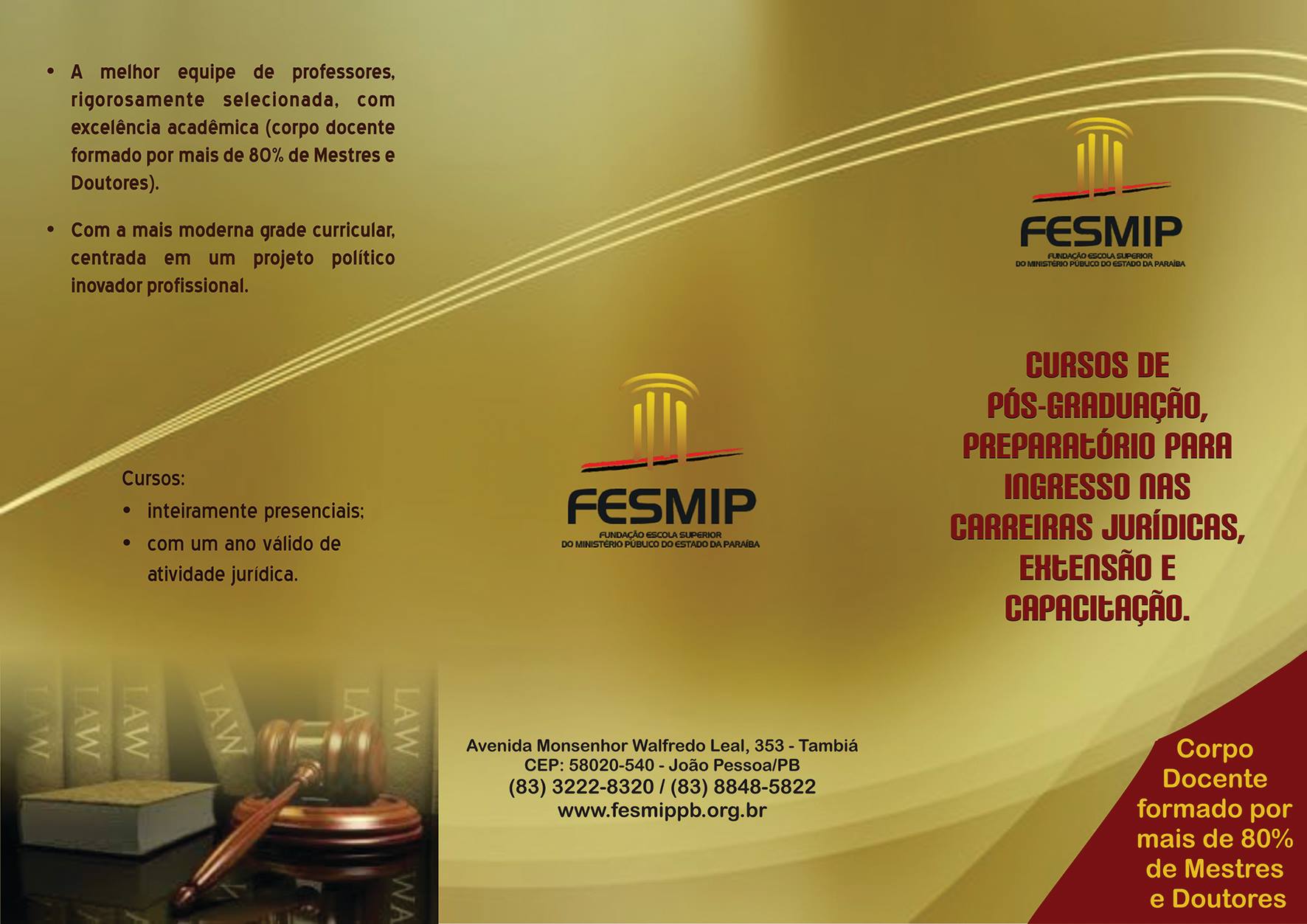 INFORMAÇÕES - FUNDAÇÃO ESCOLA SUPERIOR DO MINISTÉRIO PÚBLICO - Av. Monsenhor Walfredo Leal, 353 - Tambiá - João Pessoa/PB Telefones: (83) 3222-8320 ou (83) 8848-5822