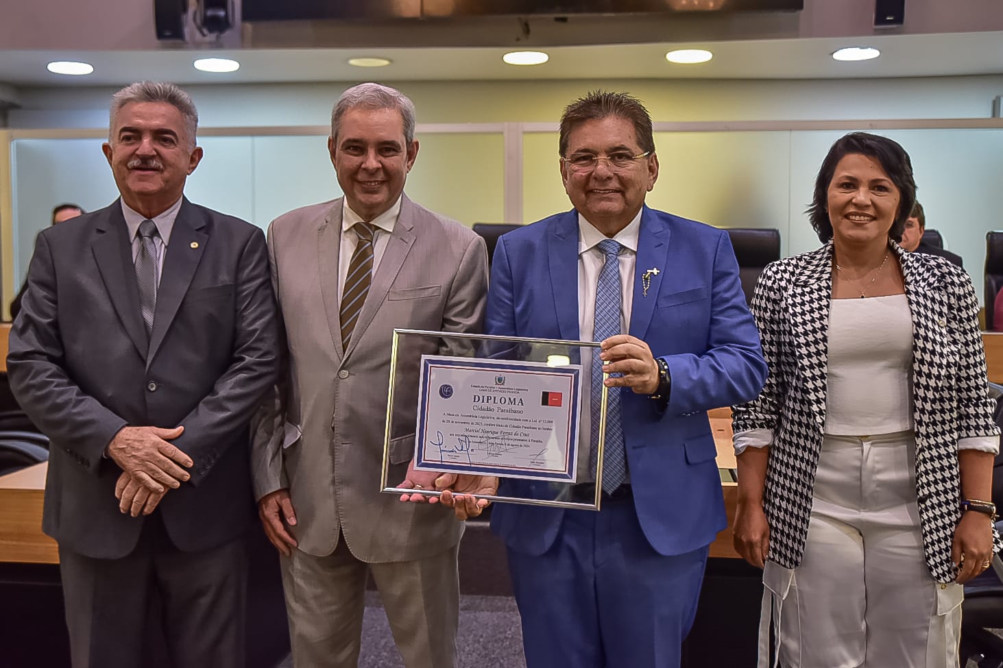 A Assembleia Legislativa do Estado realizou sessão solene nessa quinta-feira (8) para a entrega do Título de Cidadão Paraibano ao juiz Marcial Henrique Ferraz da Cruz, titular da 2ª Vara Criminal da Capital. A solenidade reuniu agentes públicos, magistrados, familiares e amigos do homenageado.