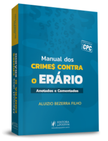 O novo livro do juiz Aluízio Bezerra, “Manual dos Crimes contra o Erário - anotados e comentados”, que será lançado nesta quinta-feira (18), às 18h, no plenário do Tribunal de Justiça da Paraíba, reflete o momento em que estamos vivendo no Brasil. O selo é da editora JusPodivm, de Salvador. A solenidade será conduzida pelo presidente da Corte, desembargador Joás de Brito Pereira Filho. O prefácio é do vice-presidente João Benedito da Silva.