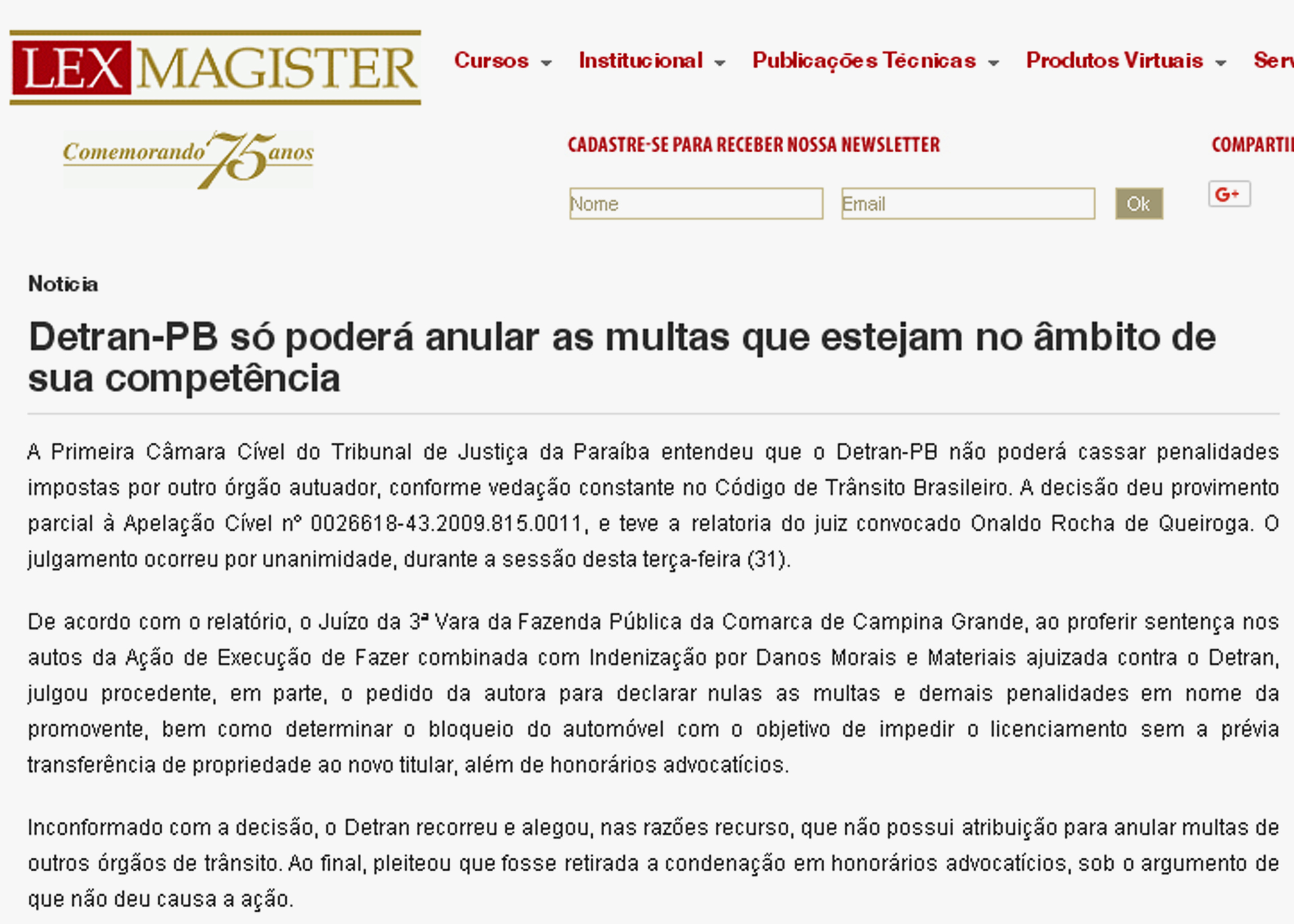 Portal Lex Magister traz decisão da Primeira Câmara Cível do TJPB