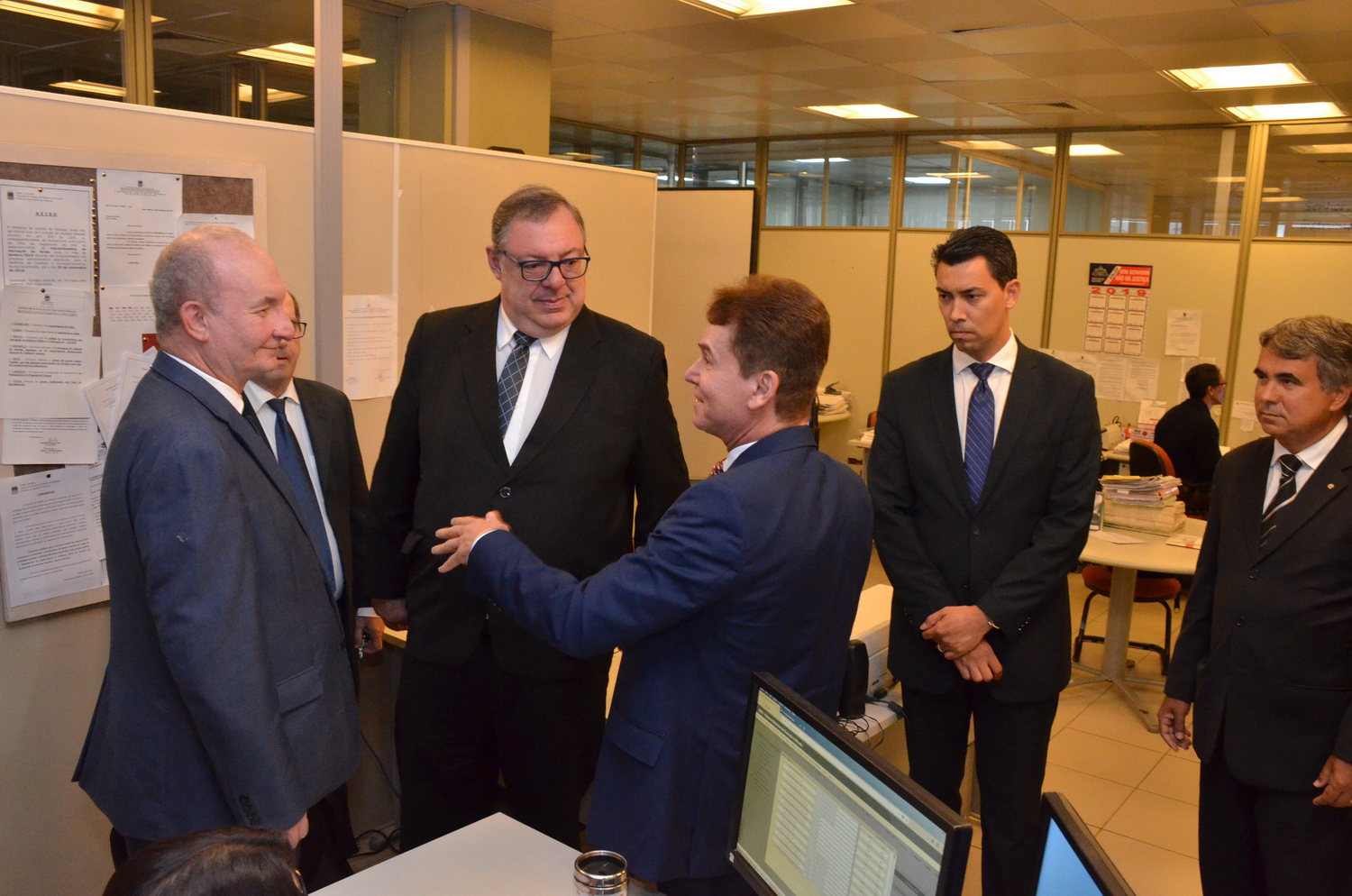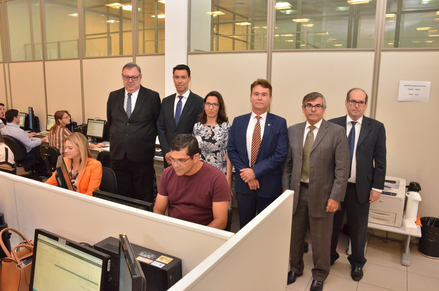 O presidente do Tribunal de Justiça da Paraíba, desembargador Márcio Murilo da Cunha Ramos, e o desembargador do Tribunal de Justiça do Paraná e representante do Conselho Nacional de Justiça (CNJ), Dalla Déa, foram conferir de perto o andamento da implantação do Sistema Eletrônico de Execução Unificado (SEEU), no âmbito do Poder Judiciário estadual. A visita ao Fórum Criminal de João Pessoa, onde acontece a implementação, aconteceu na manhã desta terça-feira (12) e contou, ainda com a presença do desembargador Joás de Brito Pereira Filho e de vários magistrados.