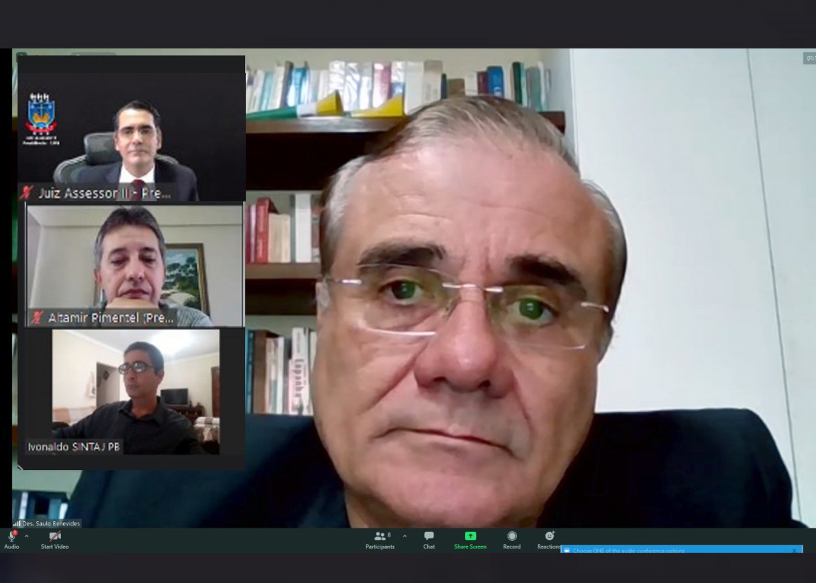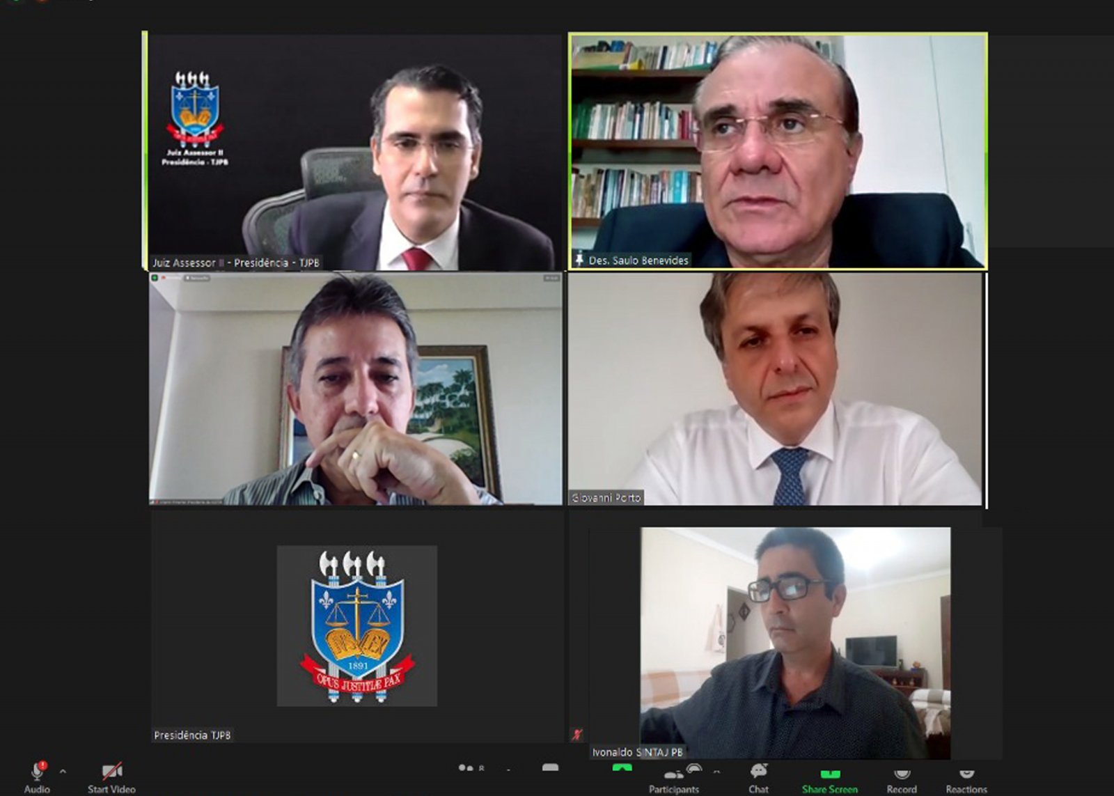 O Presidente do Tribunal de Justiça da Paraíba, Desembargador Saulo Henriques de Sá e Benevides, realizou nesta quinta-feira uma reunião virtual com o presidente da Associação dos Servidores da Secretaria do Tribunal de Justiça do Estado da Paraíba (ASSTJE-PB), Altamir Pimentel; e com o presidente do Sindicato dos Técnicos e Analistas do Judiciário da Paraíba (SINTAJ PB), José Ivonaldo.