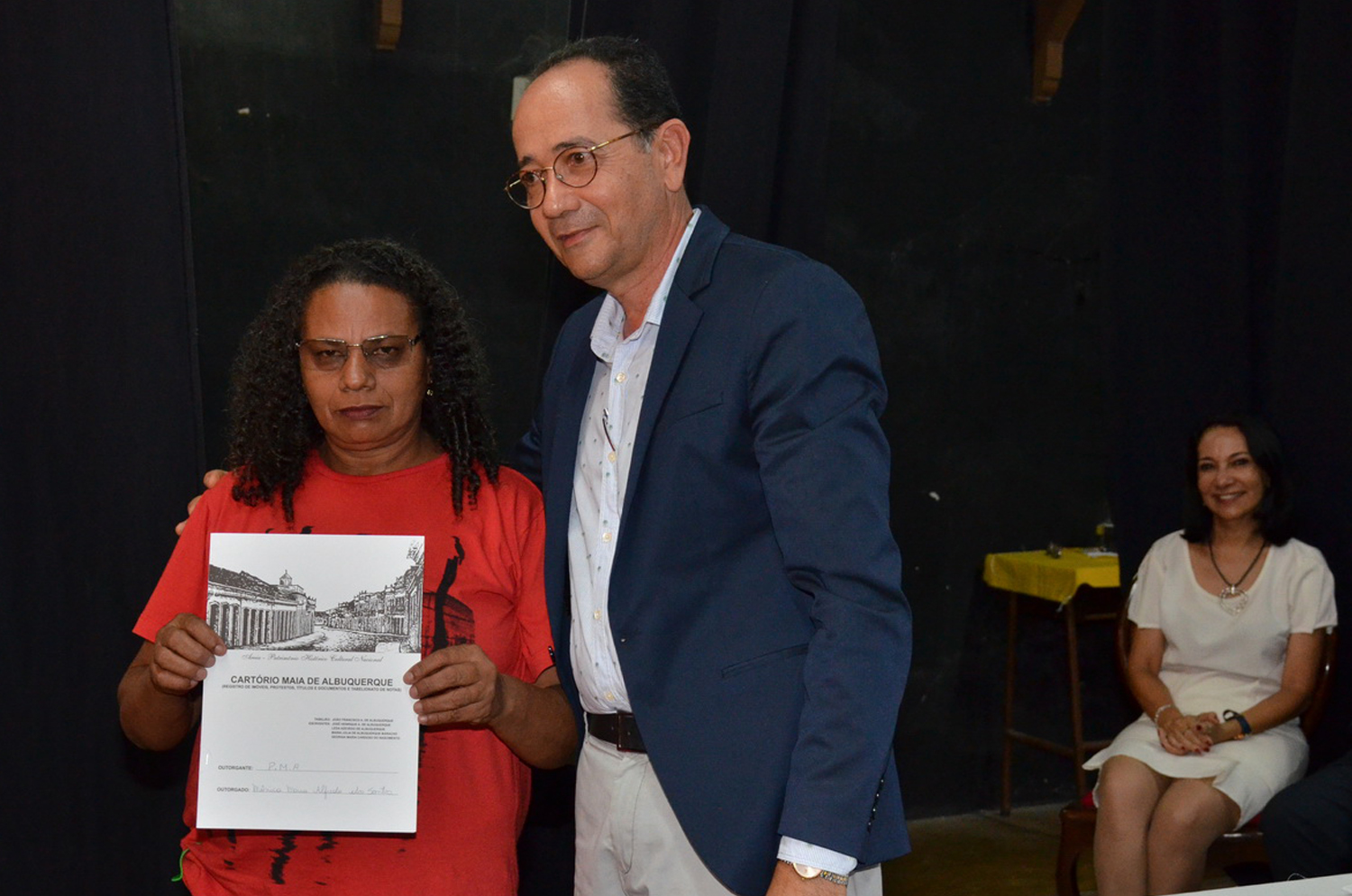 O Teatro Minerva da Comarca de Areia foi palco, na manhã desta segunda-feira (28), de um momento festivo para 130 famílias carentes, que tiveram seus imóveis regularizados por meio do Projeto Moradia Legal da Corregedoria-Geral de Justiça. “Isso é uma benção enviada por Deus, já que não tínhamos condições de pagar por essas escrituras”, ressaltou Edvaldo Marcolino Ribeiro, ao receber o título de seu imóvel, de forma gratuita.