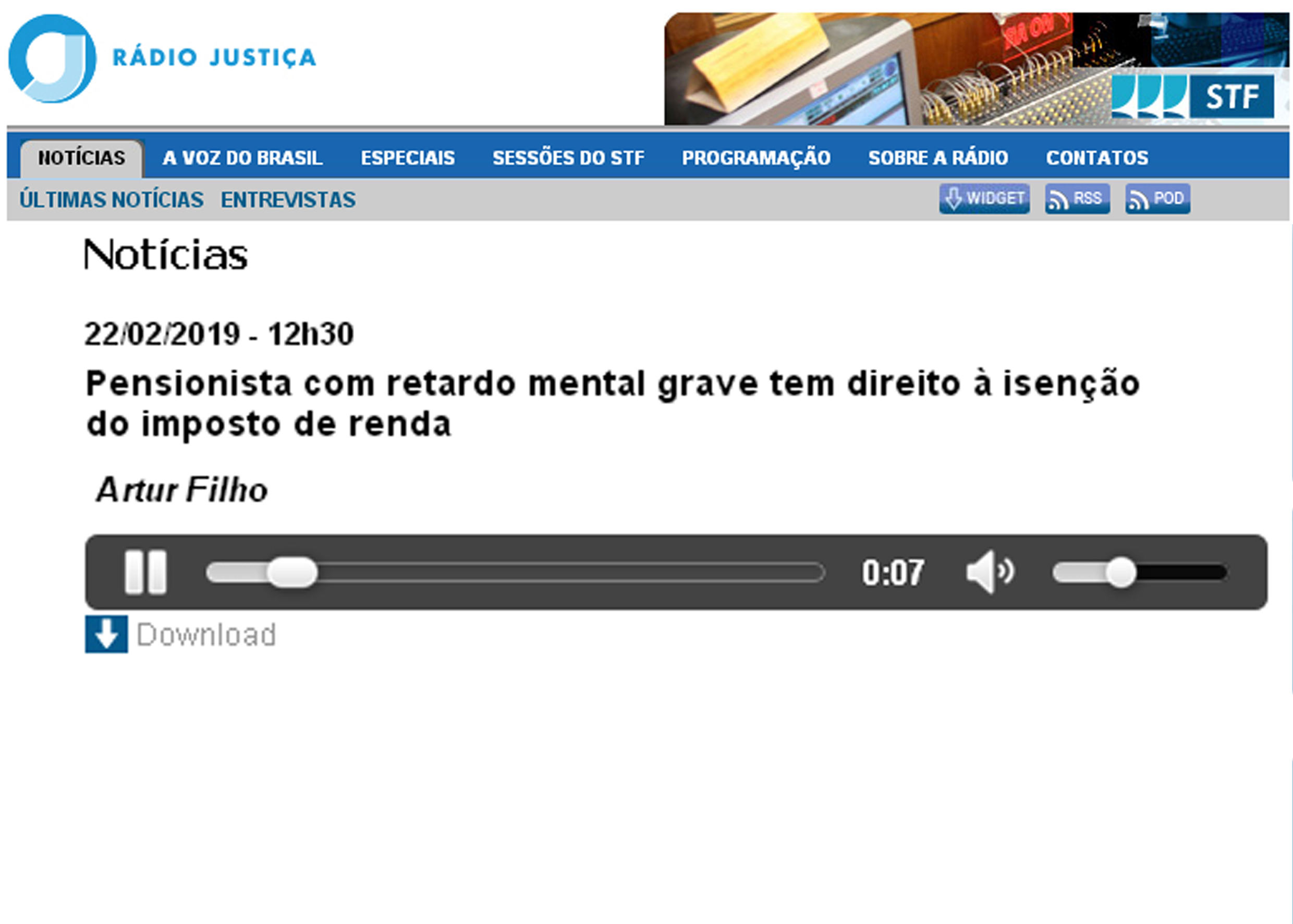 Rádio Justiça divulga matéria do TJPB sobre isenção de IR por pensionista com deficiência intelectual