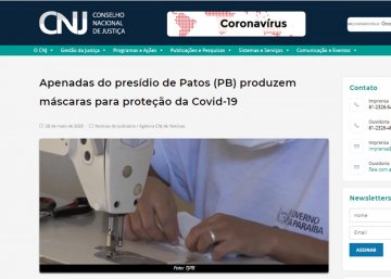 O site do Conselho Nacional de Justiça (CNJ) repercutiu, na última quinta-feira (28), notícia produzida pela Gerência de Comunicação do Tribunal de Justiça da Paraíba acerca da produção de máscaras de tecido pelas detentas do Presídio Feminino da Comarca de Patos. Desde março, já foram confeccionadas, pelo menos, 12,5 mil máscaras para auxiliar no combate à Covid-19.