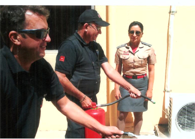 A tenente do Copro de Bombeiros, Elizete Araújo da Silva, foi a responsável por transmitir aos vigilantes instrução de prevenção e combate a incêndio, prática que contou com o apoio da monitoras sargento Maria Aparecida da Silva.