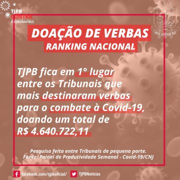 O Ato Conjunto nº 05/2020 do TJPB/CGJ, publicado no Diário da Justiça eletrônico do dia 31 de março de 2020, viabilizou a doação dos recursos financeiros com esta finalidade.