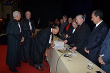 No primeiro dia de atividades à frente da presidência do Tribunal de Justiça da Paraíba (TJPB), o desembargador Marcos Cavalcanti de Albuquerque empossou os novos diretores, gerentes, e assessores da Presidência da Corte. Estiveram presentes à solenidade os desembargadores José Ricardo Porto e Arnóbio Alves Teodósio, vice-presidente da Corte e corregedor-geral de Justiça, respectivamente. O evento ocorreu na manhã desta segunda-feira (2), em cerimônia coletiva no Tribunal Pleno.