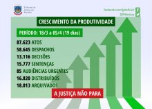 A Vara Única da Comarca de Conceição, localizada na Região do Semiárido paraibano e distante 579 Km de João Pessoa, registrou um crescimento expressivo neste mês. De acordo com o juiz substituto da Unidade Judiciária e titular da 2ª Vara de Itaporanga, Antônio Eugênio Leite Ferreira Neto, houve um acréscimo de quase 300% no cumprimento dos atos processuais praticados entre os dias 1º e 26 de maio, ou seja, até esta terça-feira. Os números revelam que foram despachados 556 processos, lançadas 219 decisões, proferidas 187 sentenças, sendo 48 sem julgamento de mérito e 129 com julgamento de...